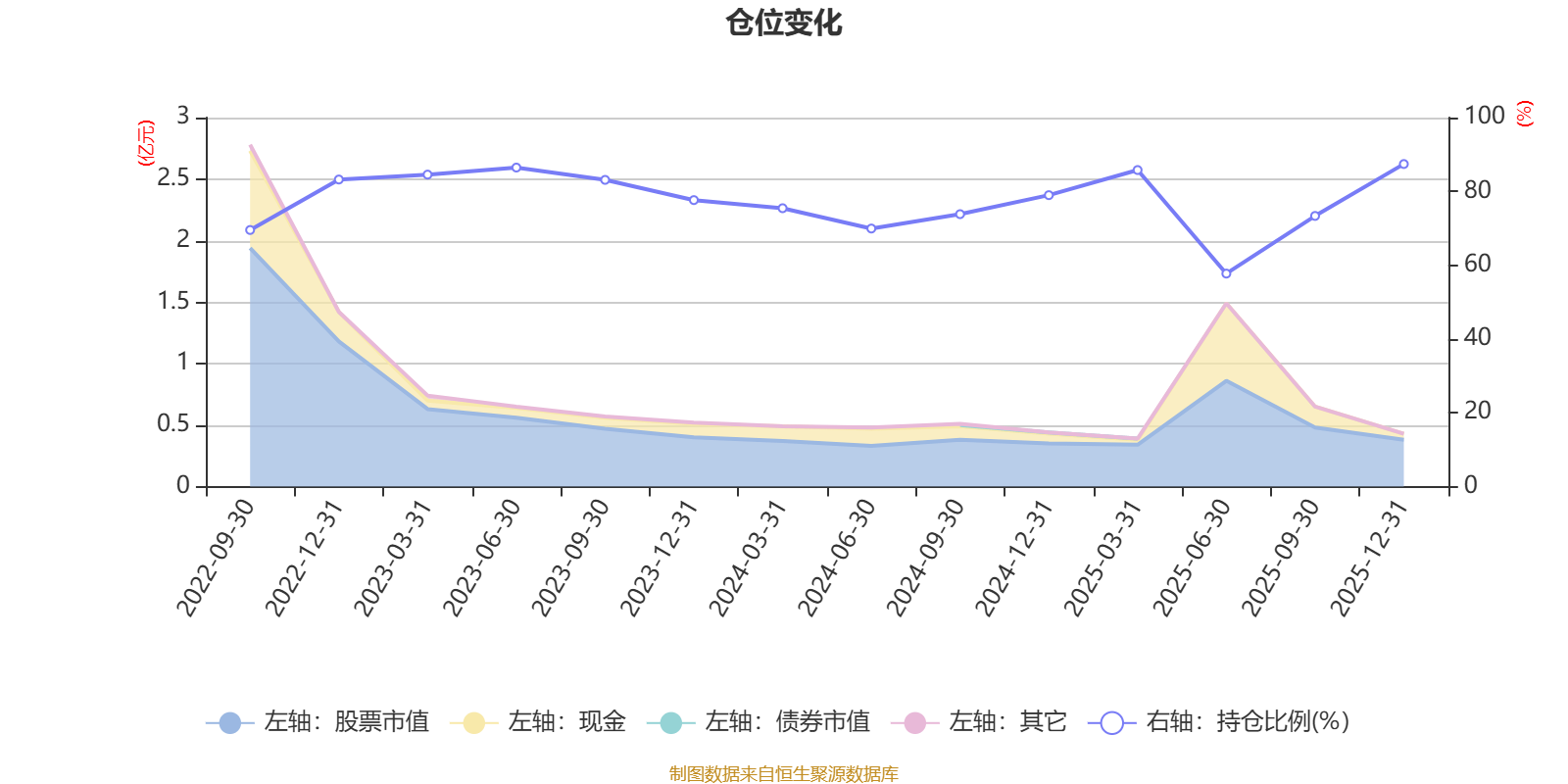 据定期报告数据统计,近三年平均股票仓位为77.85%,同类平均为84.04%。2025年末基金达到87.42%的最高仓位,2025年上半年末最低,为57.72%。
