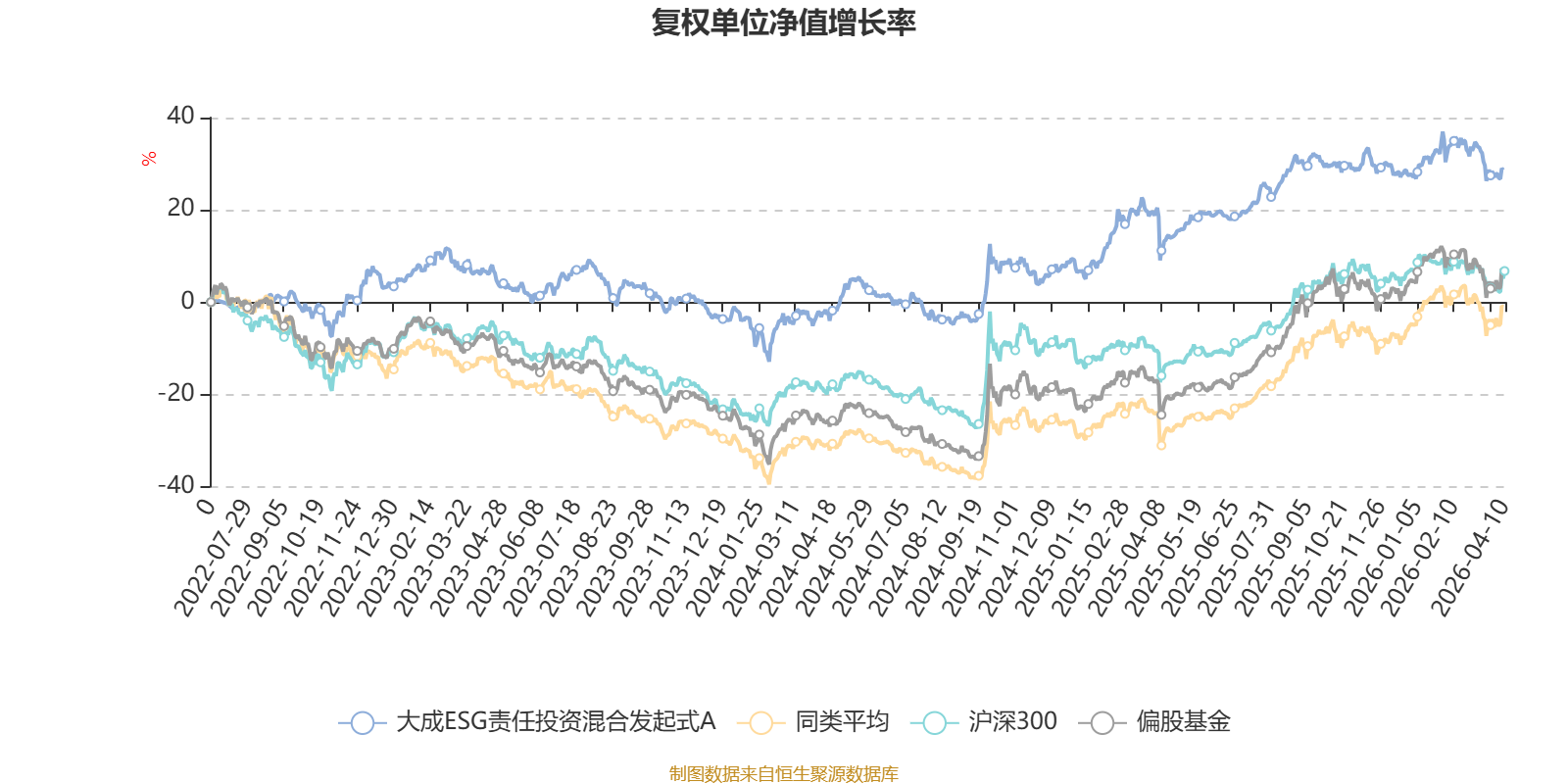 截至4月9日,大成ESG责任投资混合发起式A近三个月复权单位净值增长率为-1.38%,位于同类可比基金359/689;近半年复权单位净值增长率为-0.95%,位于同类可比基金425/689;近一年复权单位净值增长率为15.17%,位于同类可比基金588/685;近三年复权单位净值增长率为19.84%,位于同类可比基金163/417。