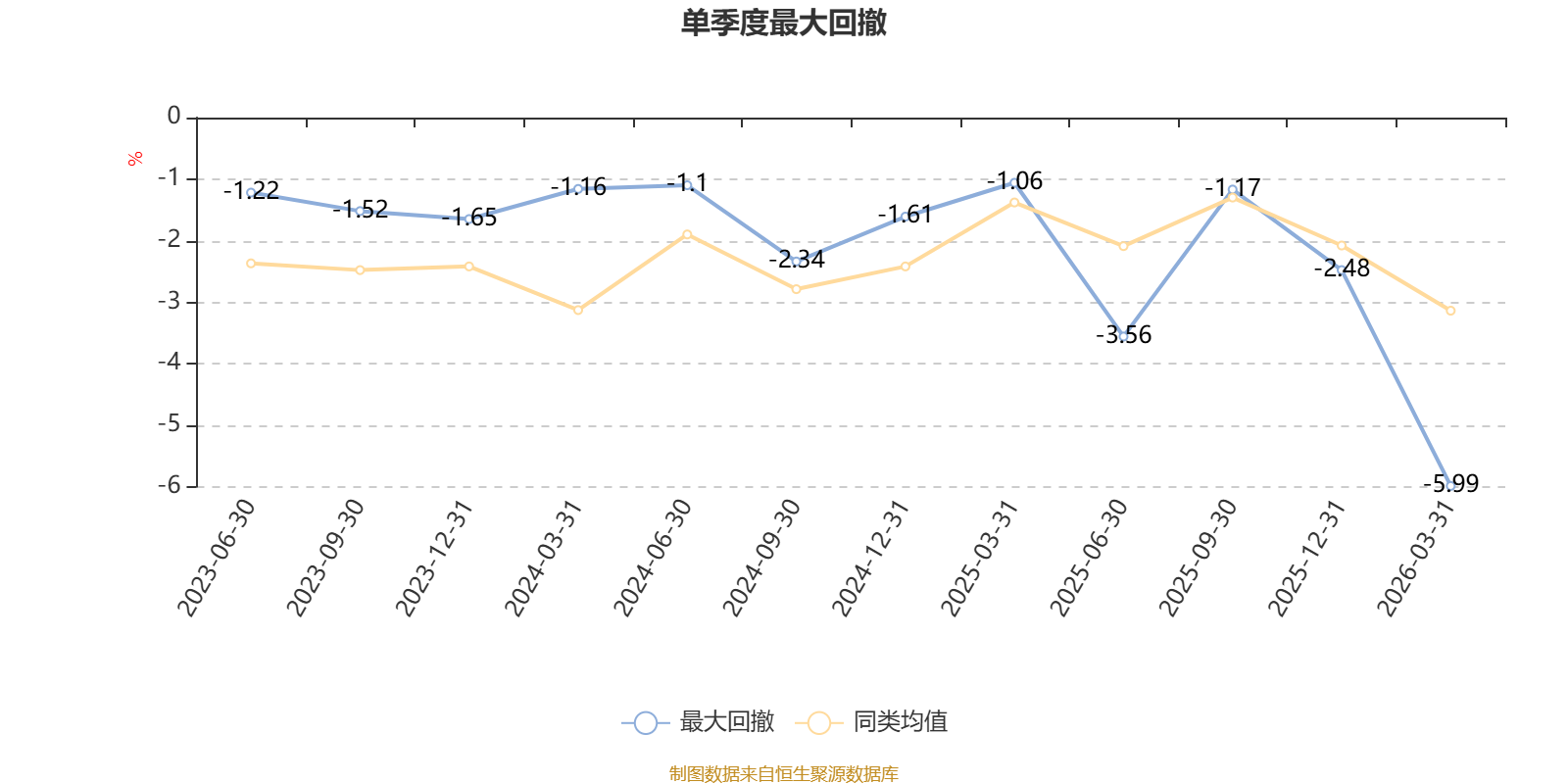 截至4月9日,基金近三年最大回撤为5.99%,同类可比基金排名260/534。单季度最大回撤出现在2026年一季度,为5.99%。