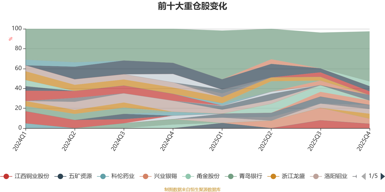截至2025年末,基金十大重仓股分别是中国海洋石油、齐鲁银行、兴业银锡、浙江龙盛、中国黄金国际、洛阳钼业、中曼石油、江西铜业股份、金川国际、山东黄金。