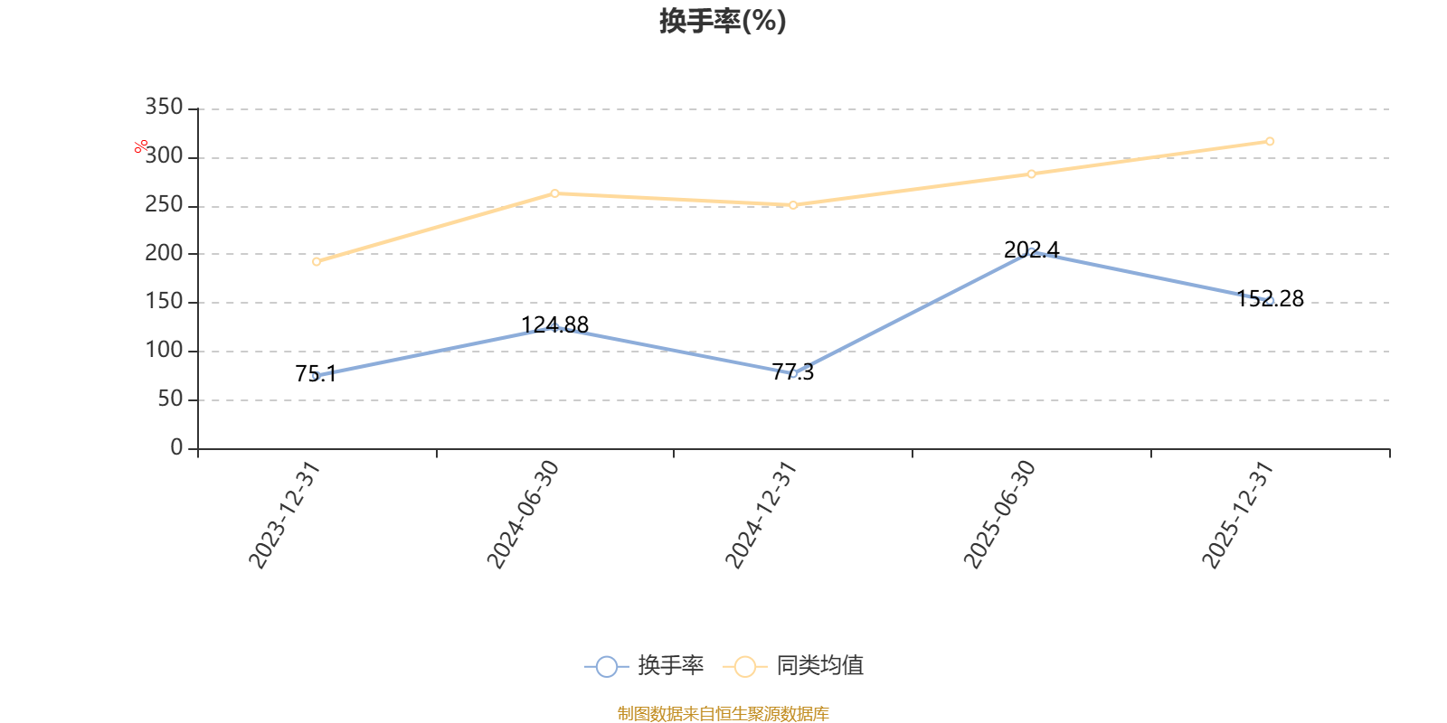截至2025年12月31日,基金最近一年换手率约357.03%,持续低于同类均值。