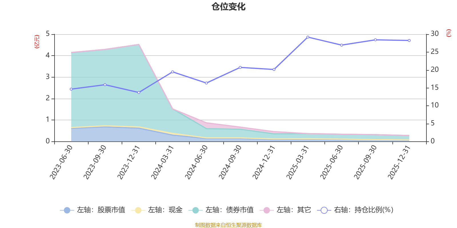 据定期报告数据统计,成立以来平均股票仓位为21.25%,同类平均为19.2%。2025年一季度末基金达到29.19%的最高仓位,2023年末最低,为13.7%。