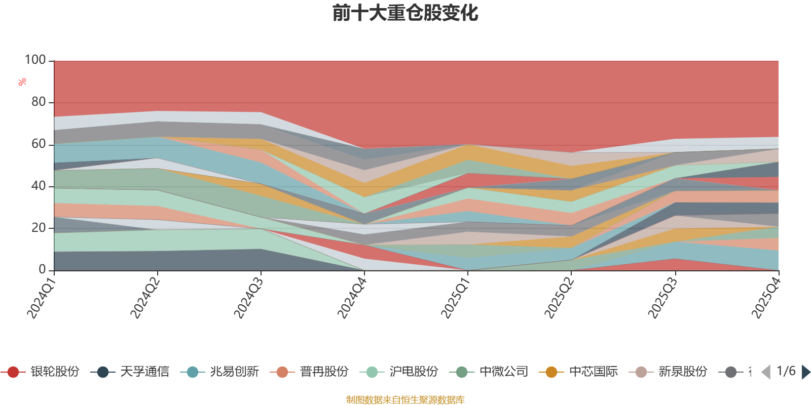 该基金持股集中度较高。截至2025年末,基金十大重仓股分别是兆易创新、天赐材料、中矿资源、北京君正、神工股份、普冉股份、寒武纪、海光信息、中微公司、芯原股份。