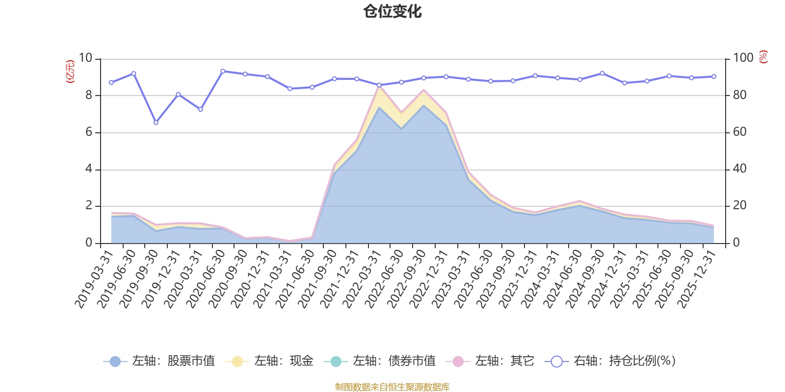 据定期报告数据统计,近三年平均股票仓位为89.32%,同类平均为72.57%。2020年上半年末基金达到93.31%的最高仓位,2019年三季度末最低,为65.46%。