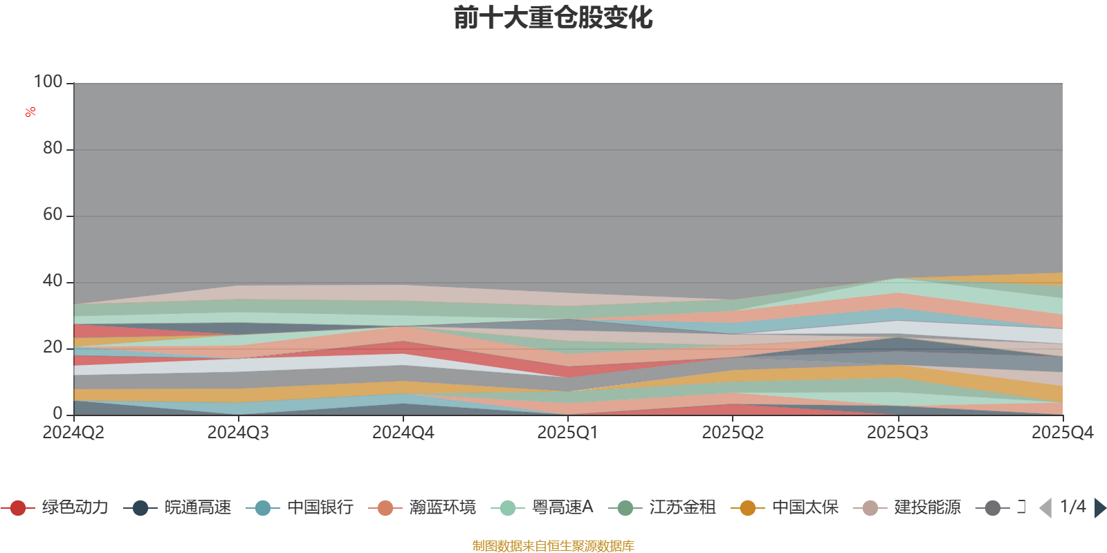 截至2025年末,基金十大重仓股分别是中国太保、中国神华、山东高速、江苏宁沪高速公路、保利物业、建投能源、兴业银行、长江电力、建设银行、瀚蓝环境。