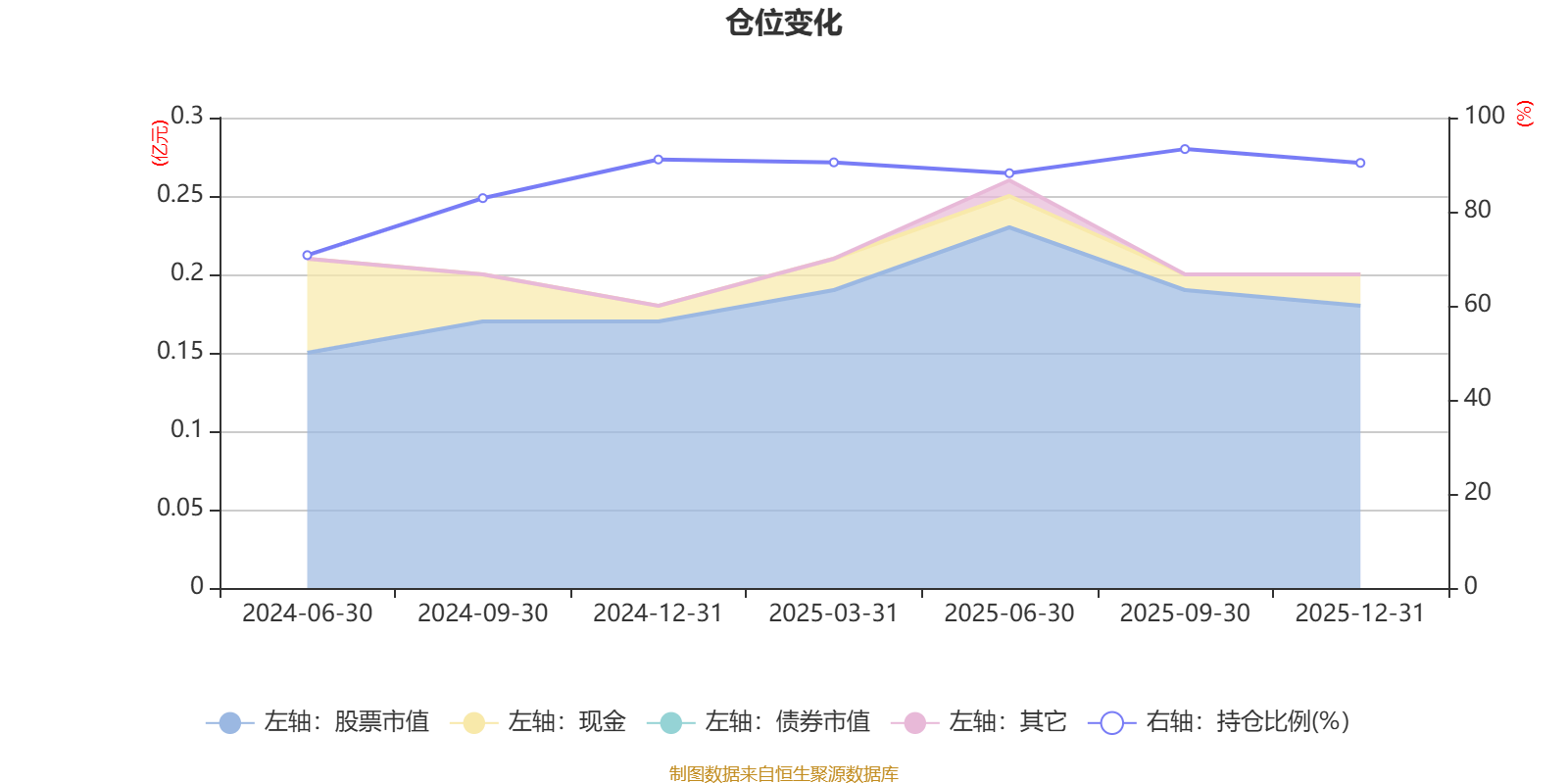 据定期报告数据统计,成立以来平均股票仓位为86.73%,同类平均为84.04%。2025年三季度末基金达到93.31%的最高仓位,2024年上半年末最低,为70.76%。