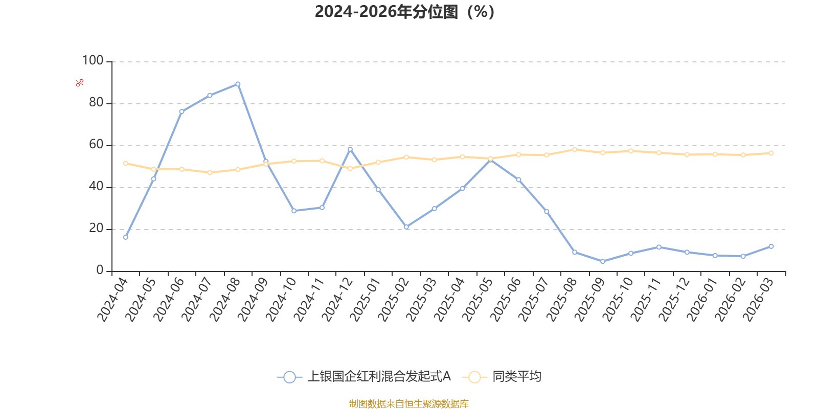 通过所选区间该基金净值增长率分位图,可以观察该基金与同类基金业绩比较情况。图为坐标原点到区间内某时点的净值增长率在同类基金中的分位数。