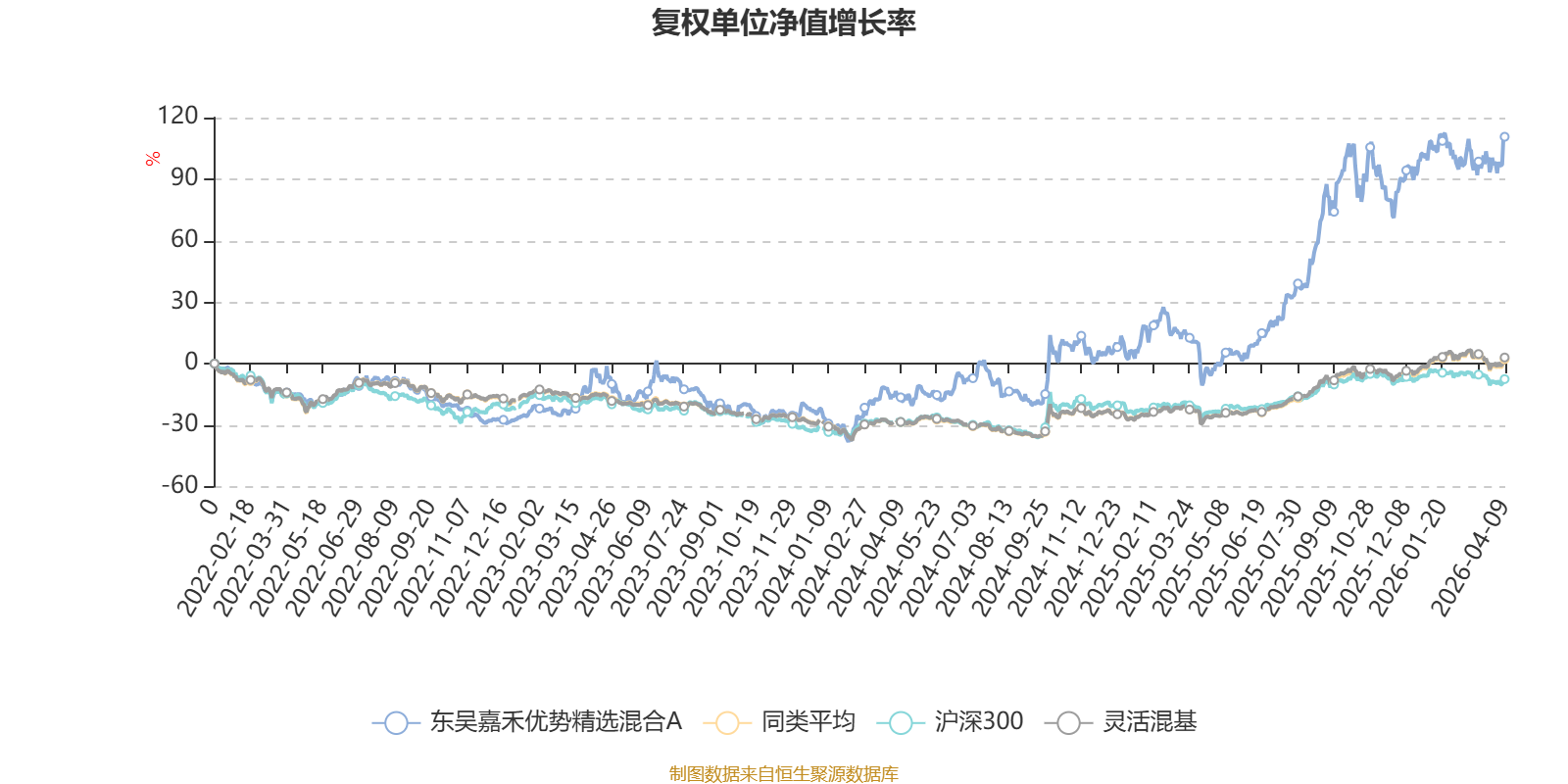 AI基金东吴嘉禾优势精选混合A(580001)披露2025年年报,2025年基金利润4.09亿元,加权平均基金份额本期利润0.8252元。报告期内,基金净值增长率为87.23%,截至2025年末,基金规模为9.74亿元。