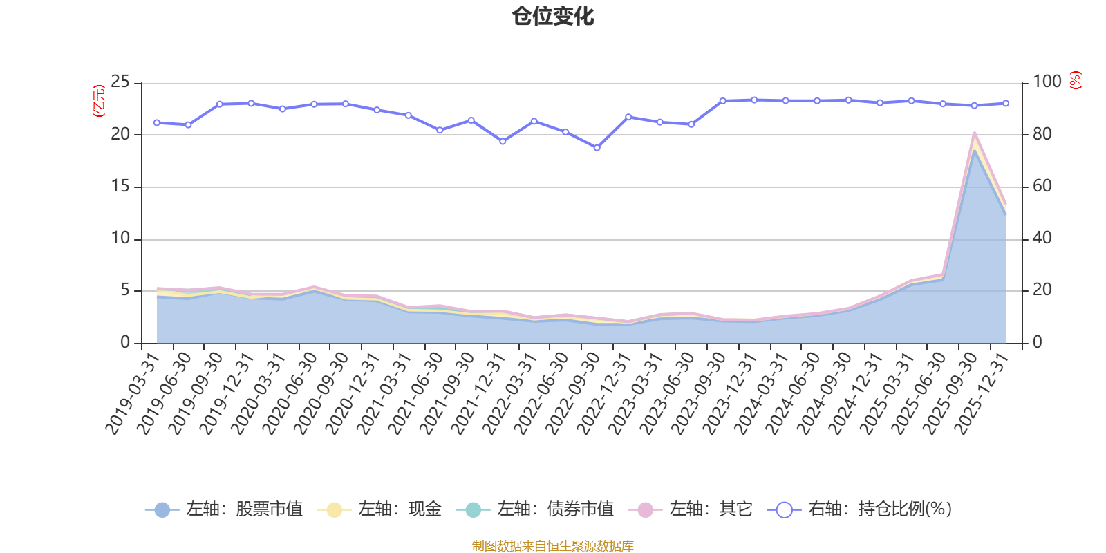 据定期报告数据统计,近三年平均股票仓位为91.38%,同类平均为72.57%。2023年末基金达到93.48%的最高仓位,2022年三季度末最低,为75.11%。