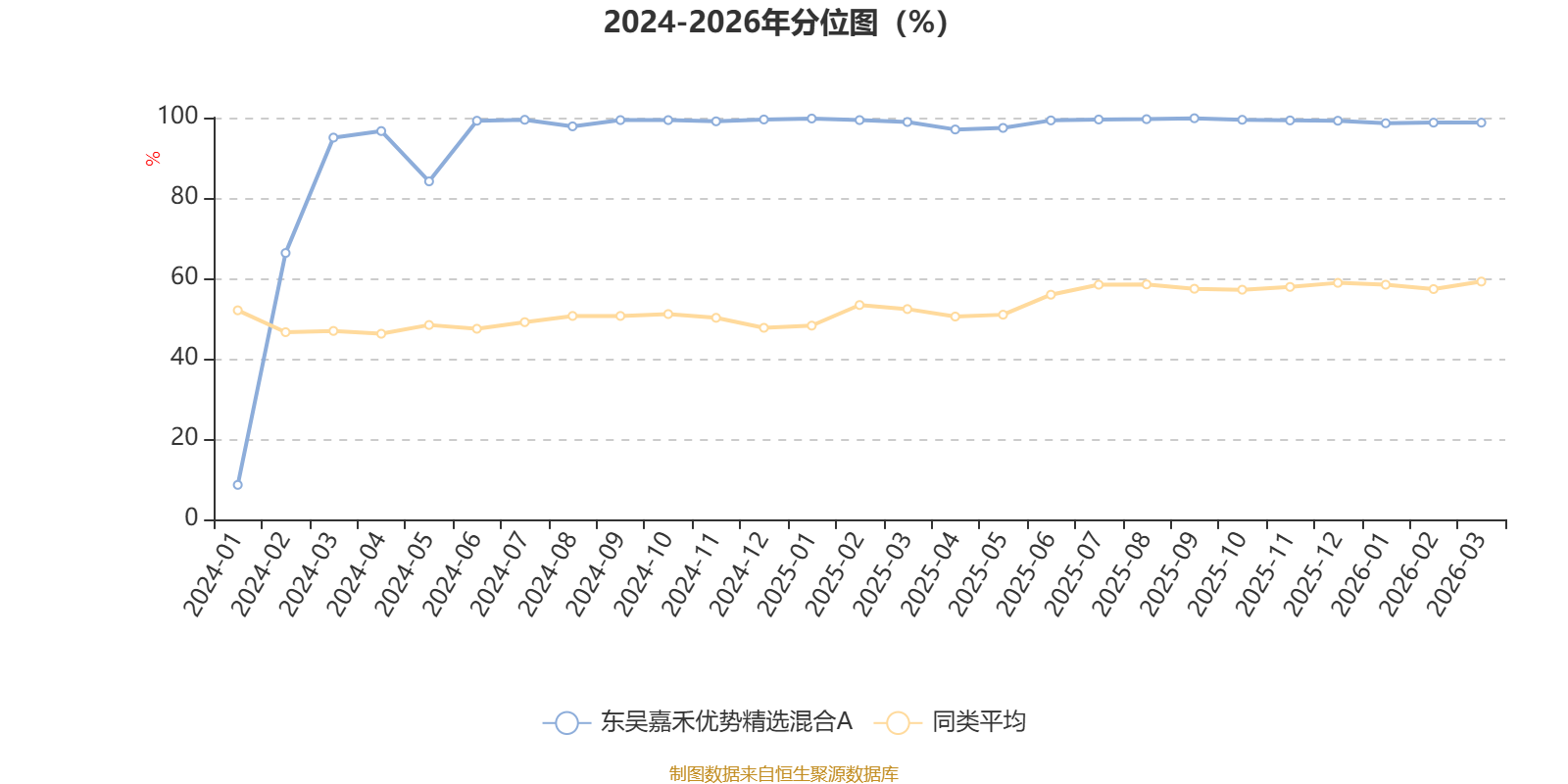 通过所选区间该基金净值增长率分位图,可以观察该基金与同类基金业绩比较情况。图为坐标原点到区间内某时点的净值增长率在同类基金中的分位数。