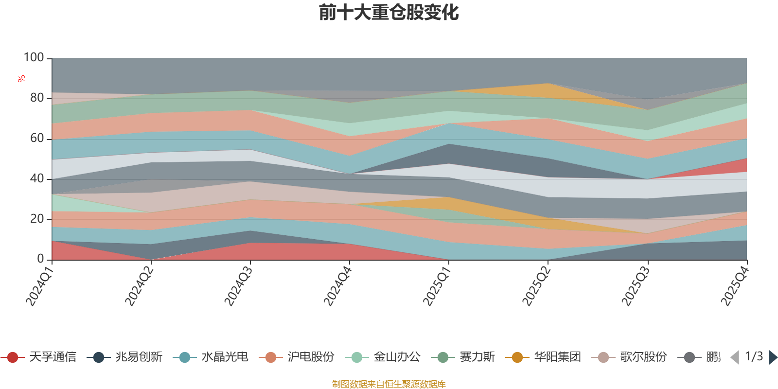 该基金持股集中度较高,近2年前十大重仓股集中度长期超过60%。截至2025年末,基金十大重仓股分别是豪威集团、中际旭创、立讯精密、新易盛、德赛西威、兆易创新、水晶光电、拓普集团、沪电股份、蓝思科技。