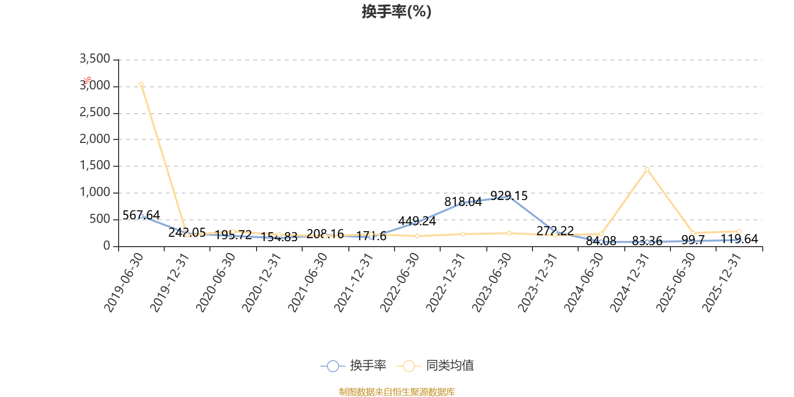 截至2025年12月31日,基金最近一年换手率约214.03%,持续2年低于同类均值。