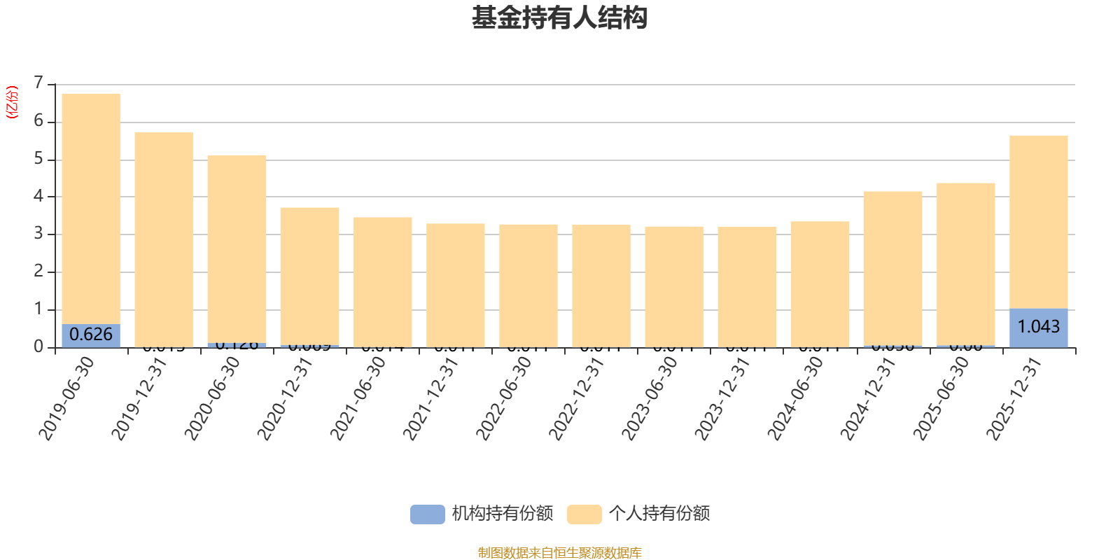 截至2025年12月31日,基金持有人共计3.11万户,合计持有5.63亿份。其中管理人员工持有102.19万份,占比0.18%,机构持有份额占比18.53%,个人投资者占比81.47%。