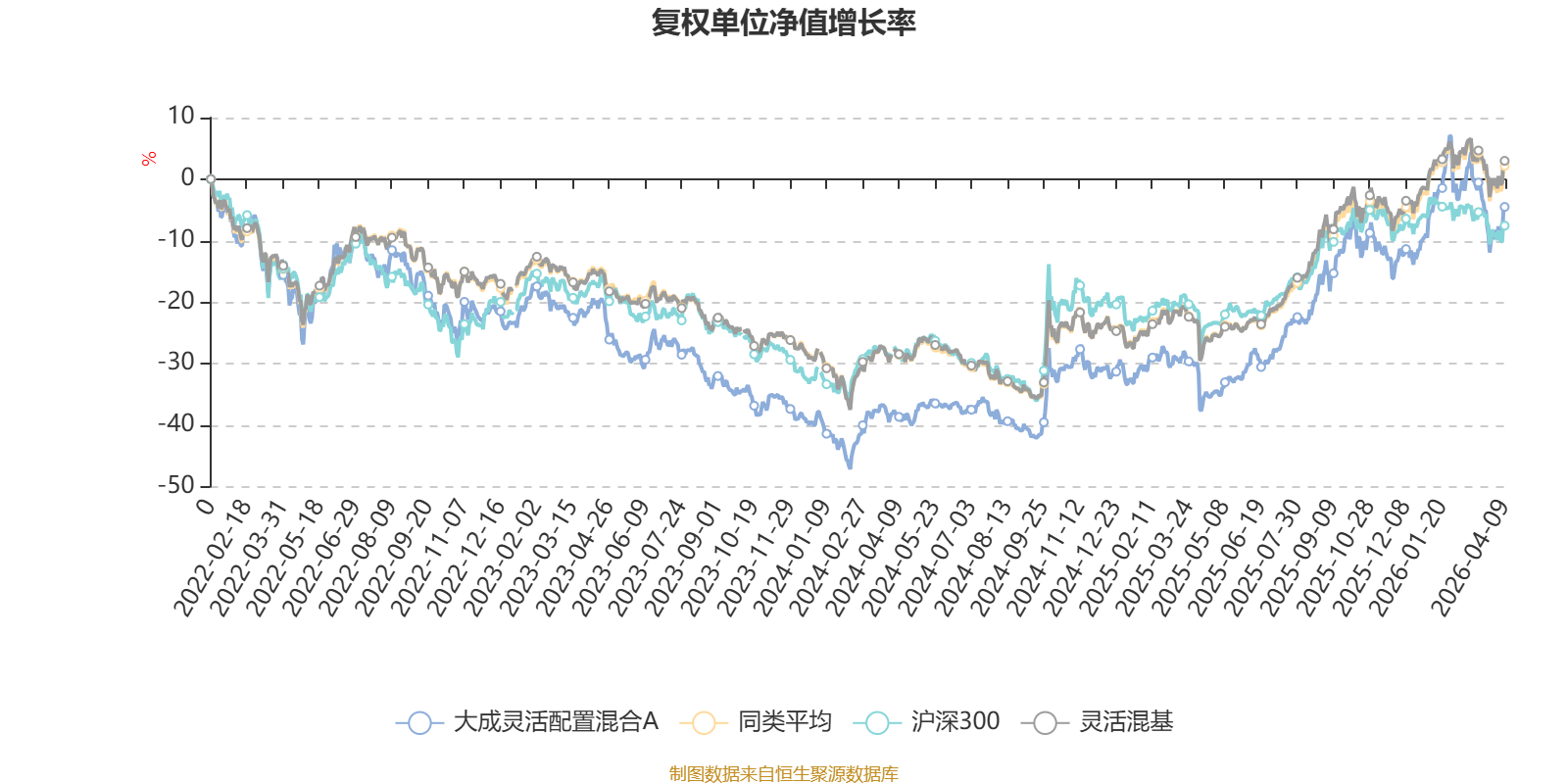 截至4月9日,大成灵活配置混合A近三个月复权单位净值增长率为-0.36%,位于同类可比基金617/1287;近半年复权单位净值增长率为1.33%,位于同类可比基金682/1286;近一年复权单位净值增长率为50.99%,位于同类可比基金357/1286;近三年复权单位净值增长率为18.48%,位于同类可比基金525/1286。