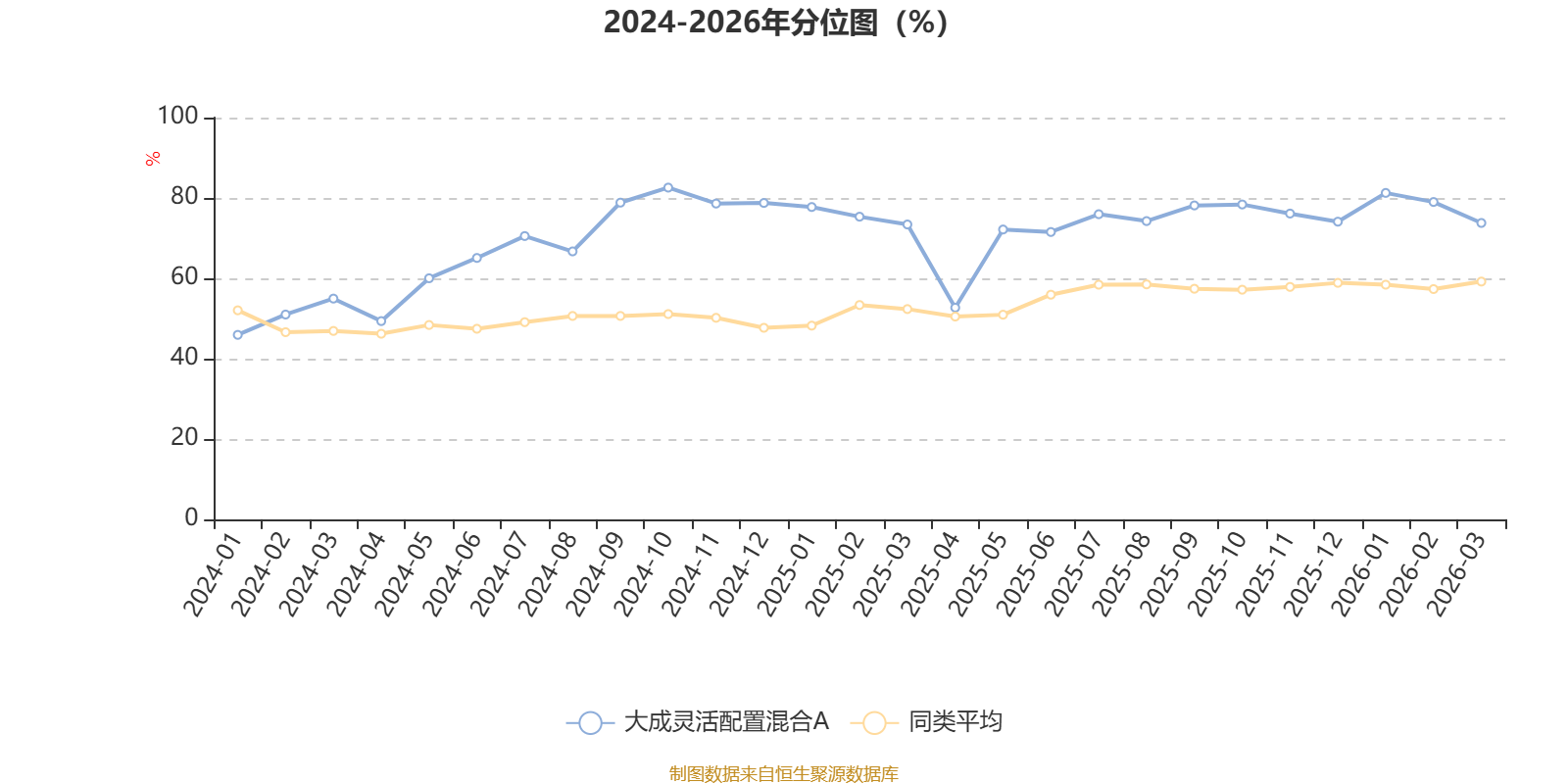 通过所选区间该基金净值增长率分位图,可以观察该基金与同类基金业绩比较情况。图为坐标原点到区间内某时点的净值增长率在同类基金中的分位数。