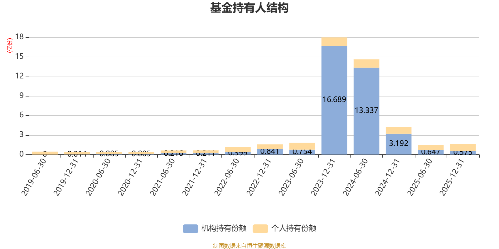截至2025年12月31日,基金持有人共计1.83万户,合计持有1.61亿份。其中管理人员工持有106.55万份,占比0.66%,机构持有份额占比35.76%,个人投资者占比64.24%。