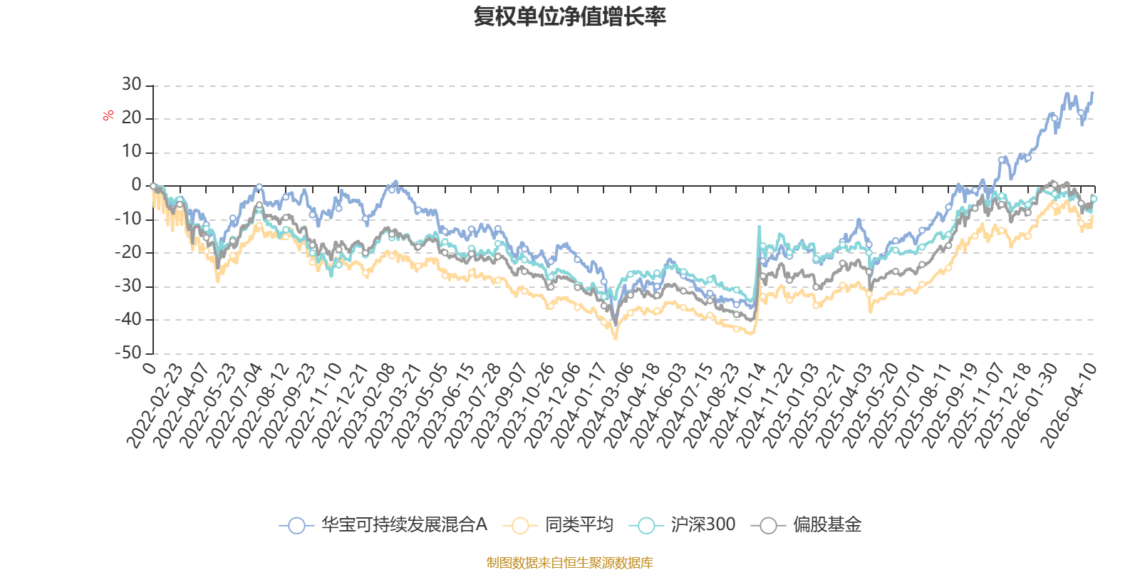 截至4月9日,华宝可持续发展混合A近三个月复权单位净值增长率为9.85%,位于同类可比基金19/265;近半年复权单位净值增长率为25.69%,位于同类可比基金4/265;近一年复权单位净值增长率为73.44%,位于同类可比基金36/265;近三年复权单位净值增长率为39.19%,位于同类可比基金44/261。