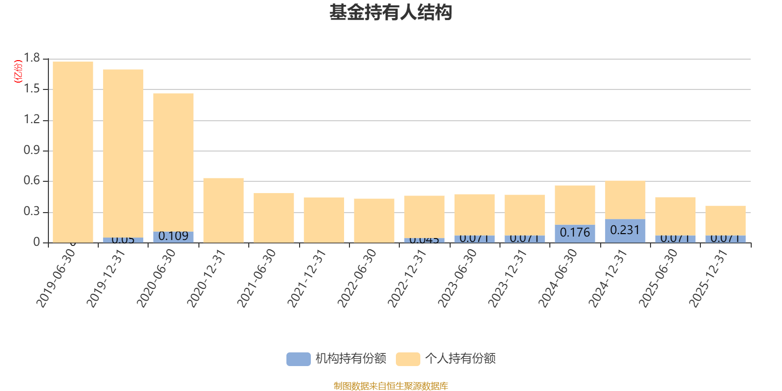 截至2025年12月31日,基金持有人共计2615户,合计持有3599.7万份。其中管理人员工持有22.92万份,占比0.64%,机构持有份额占比19.61%,个人投资者占比80.39%。