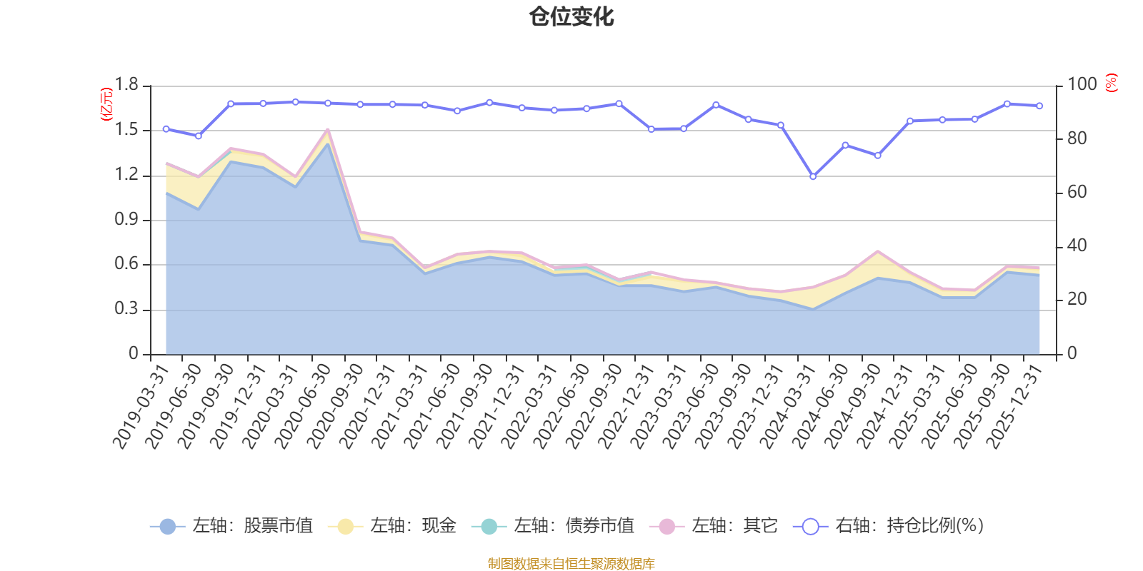 据定期报告数据统计,近三年平均股票仓位为84.59%,同类平均为86.9%。2020年一季度末基金达到93.94%的最高仓位,2024年一季度末最低,为66.18%。