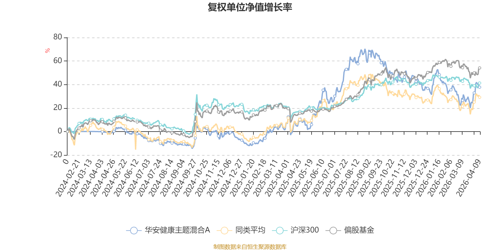 截至4月9日,华安健康主题混合A近三个月复权单位净值增长率为-7.73%,位于同类可比基金72/106;近半年复权单位净值增长率为-12.16%,位于同类可比基金86/106;近一年复权单位净值增长率为39.03%,位于同类可比基金20/104。