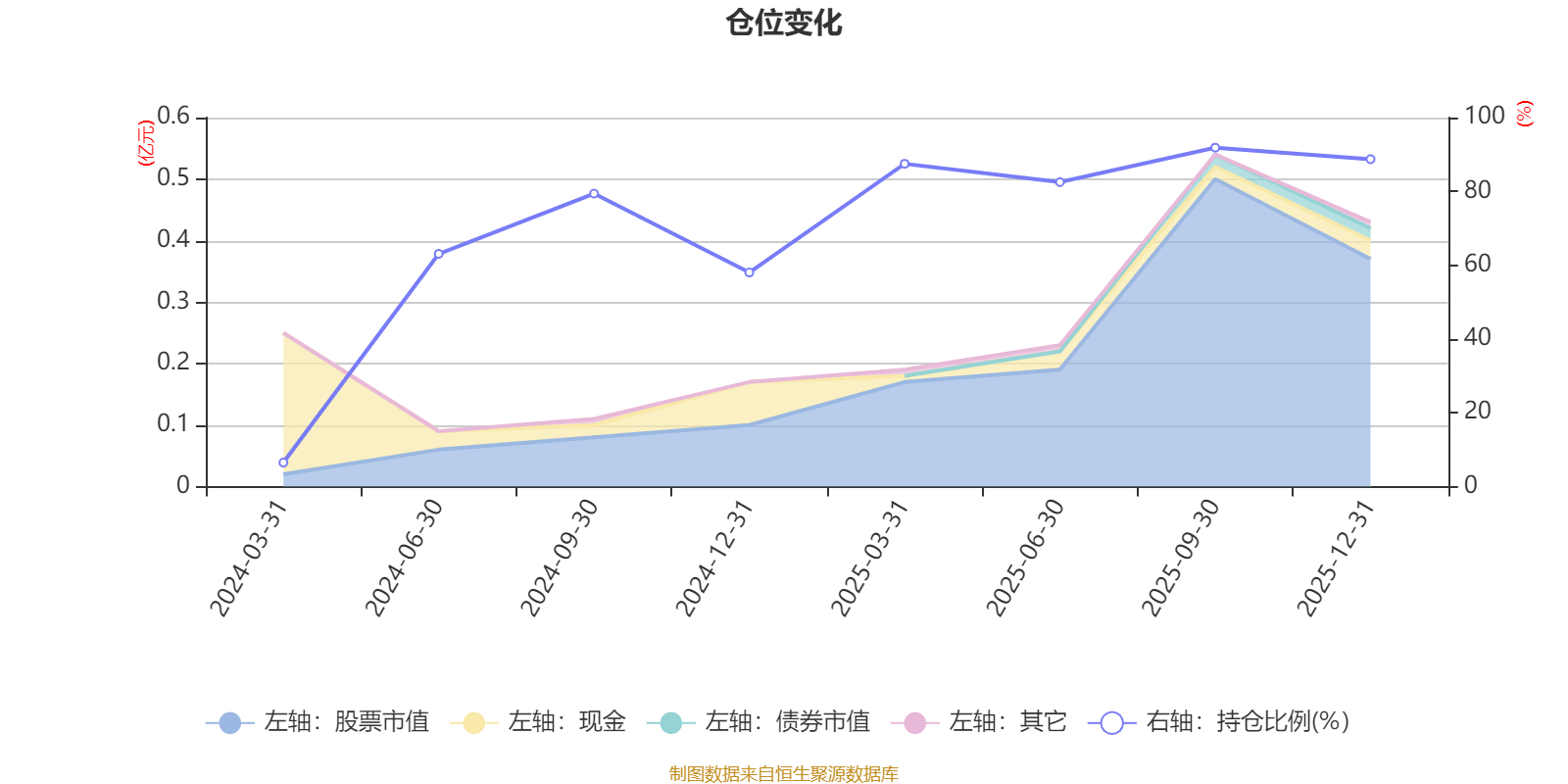 据定期报告数据统计,成立以来平均股票仓位为69.7%,同类平均为86.7%。2025年三季度末基金达到91.86%的最高仓位,2024年一季度末最低,为6.51%。