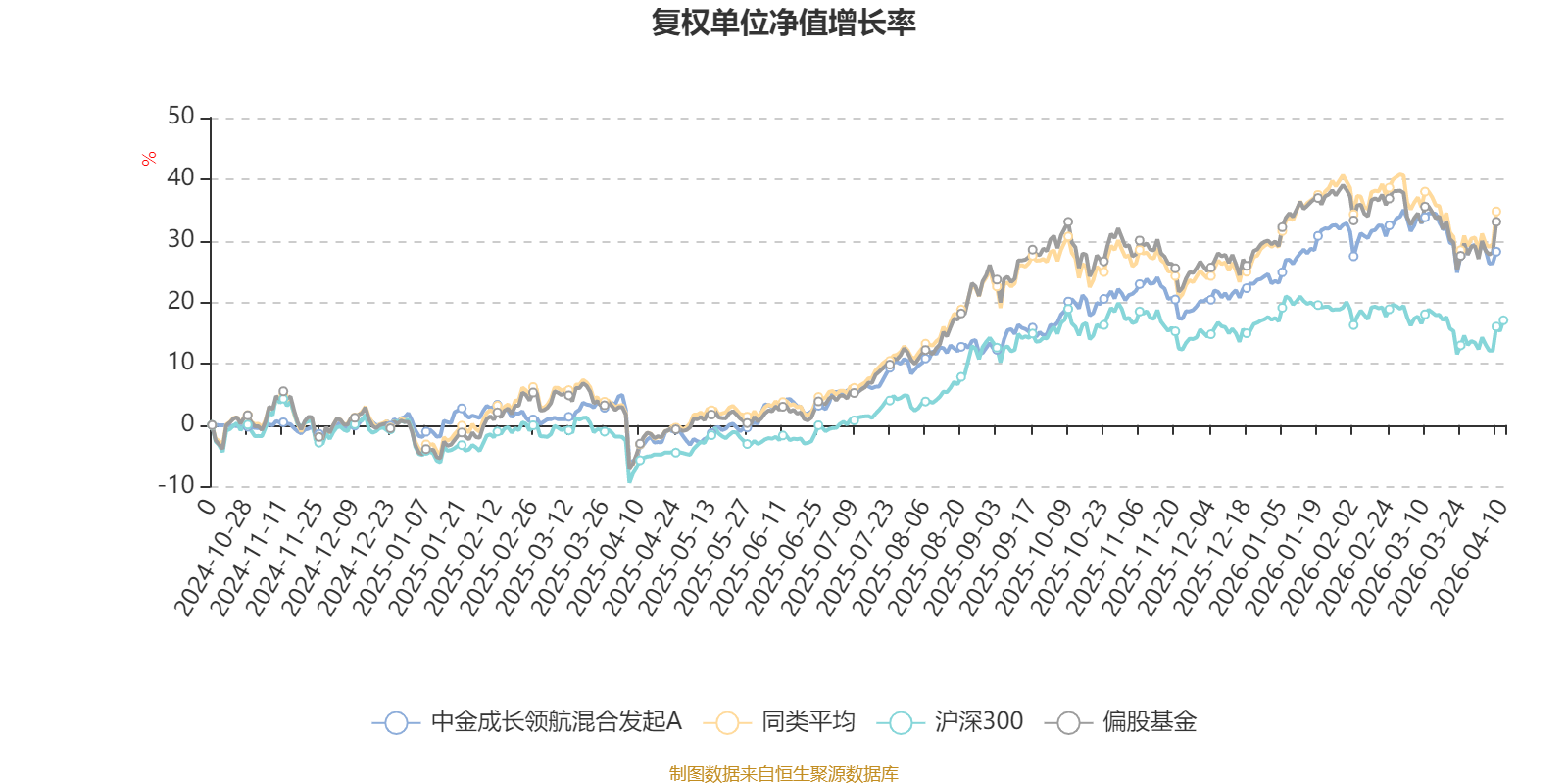 截至4月9日,中金成长领航混合发起A近三个月复权单位净值增长率为0.60%,位于同类可比基金260/689;近半年复权单位净值增长率为6.52%,位于同类可比基金209/689;近一年复权单位净值增长率为35.71%,位于同类可比基金352/685。