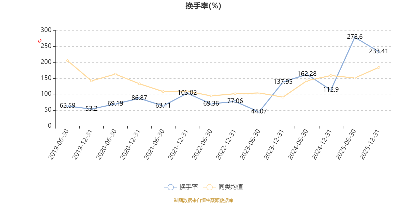 截至2025年12月31日,基金最近一年换手率约506.13%,持续1年高于同类均值。