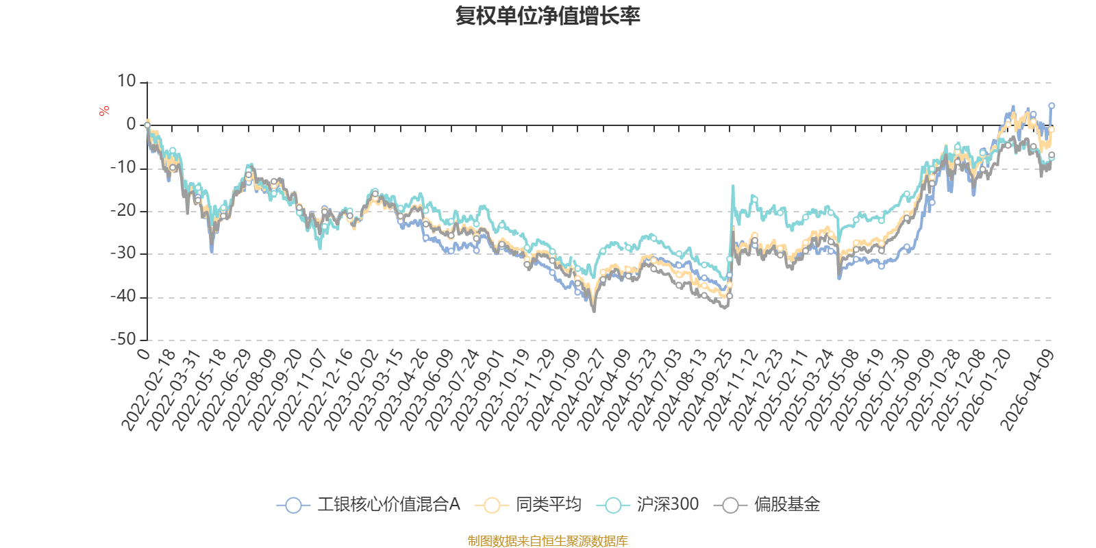 截至4月9日,工银核心价值混合A近三个月复权单位净值增长率为4.60%,位于同类可比基金17/130;近半年复权单位净值增长率为11.97%,位于同类可比基金16/130;近一年复权单位净值增长率为60.81%,位于同类可比基金28/130;近三年复权单位净值增长率为34.31%,位于同类可比基金30/126。