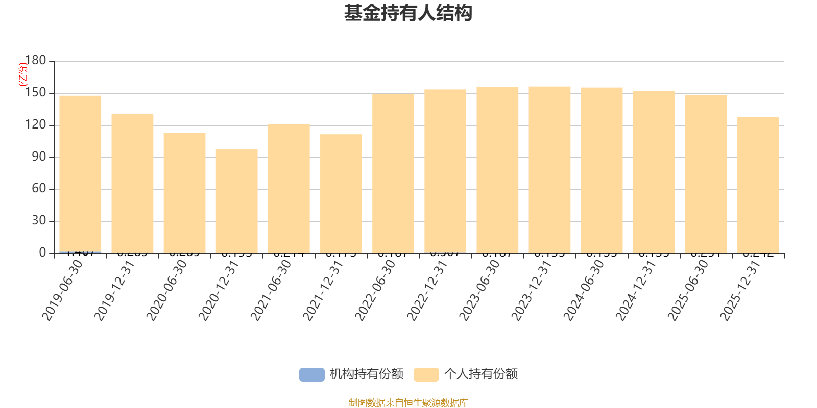 截至2025年12月31日,基金持有人共计15.55万户,合计持有127.88亿份。其中管理人员工持有49.21万份,机构持有份额占比0.19%,个人投资者占比99.81%。