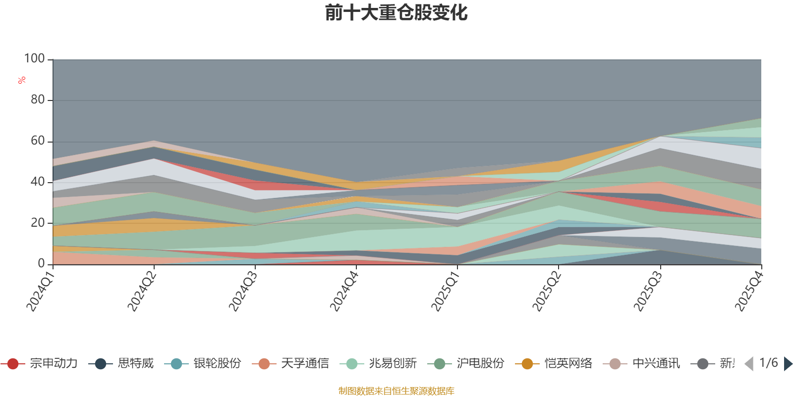 截至2025年末,基金十大重仓股分别是中际旭创、新易盛、宁德时代、石头科技、洛阳钼业、纽威股份、天华新能、金诚信、艾力斯、紫金矿业。