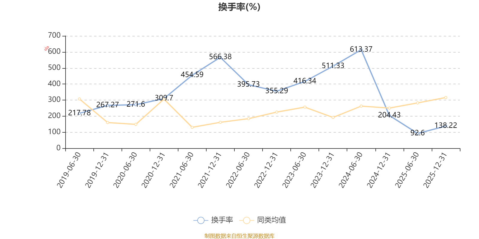 截至2025年12月31日,基金最近一年换手率约231.58%,持续1年低于同类均值。