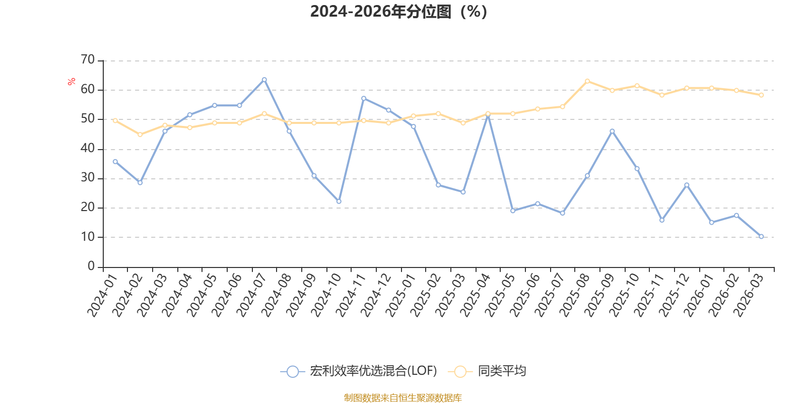 通过所选区间该基金净值增长率分位图,可以观察该基金与同类基金业绩比较情况。图为坐标原点到区间内某时点的净值增长率在同类基金中的分位数。