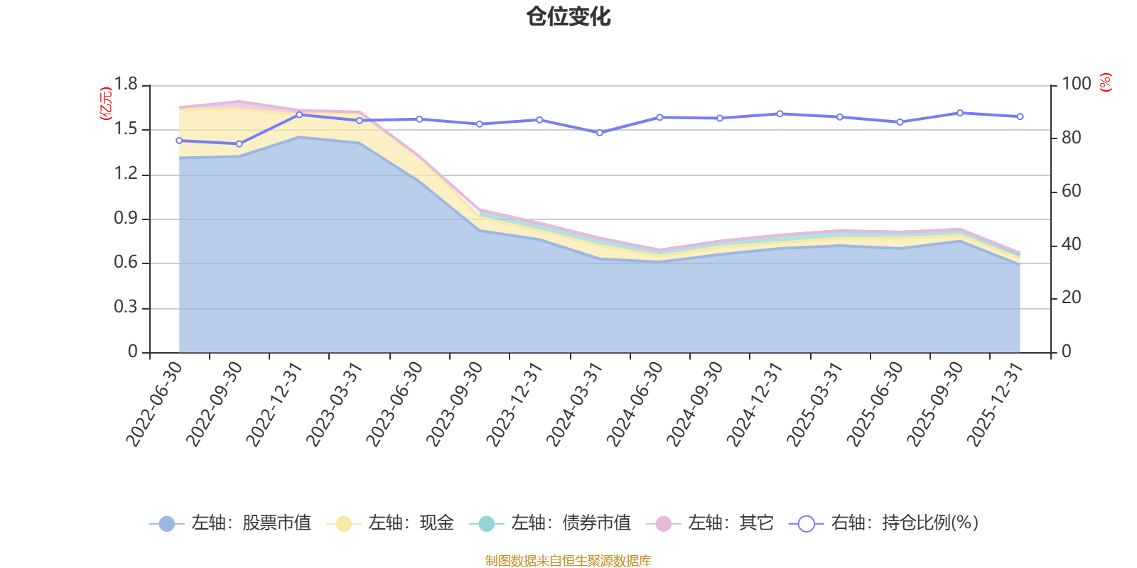 据定期报告数据统计,近三年平均股票仓位为87.17%,同类平均为84.04%。2025年三季度末基金达到89.64%的最高仓位,2022年三季度末最低,为78.07%。