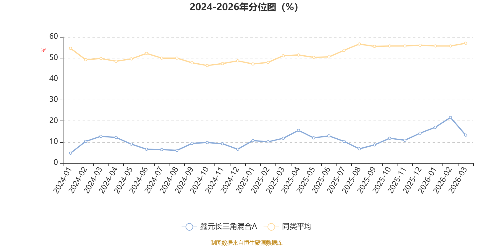 通过所选区间该基金净值增长率分位图,可以观察该基金与同类基金业绩比较情况。图为坐标原点到区间内某时点的净值增长率在同类基金中的分位数。