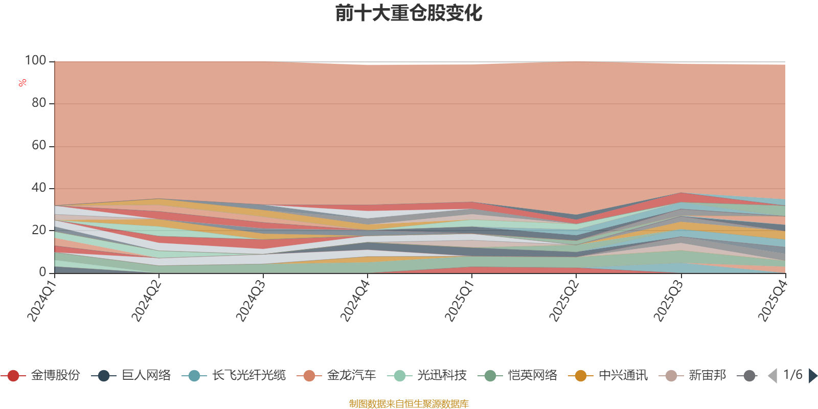 截至2025年末,基金十大重仓股分别是布鲁可、环旭电子、菲利华、华新建材、万华化学、金龙汽车、三一重工、中材科技、精工钢构、恺英网络。