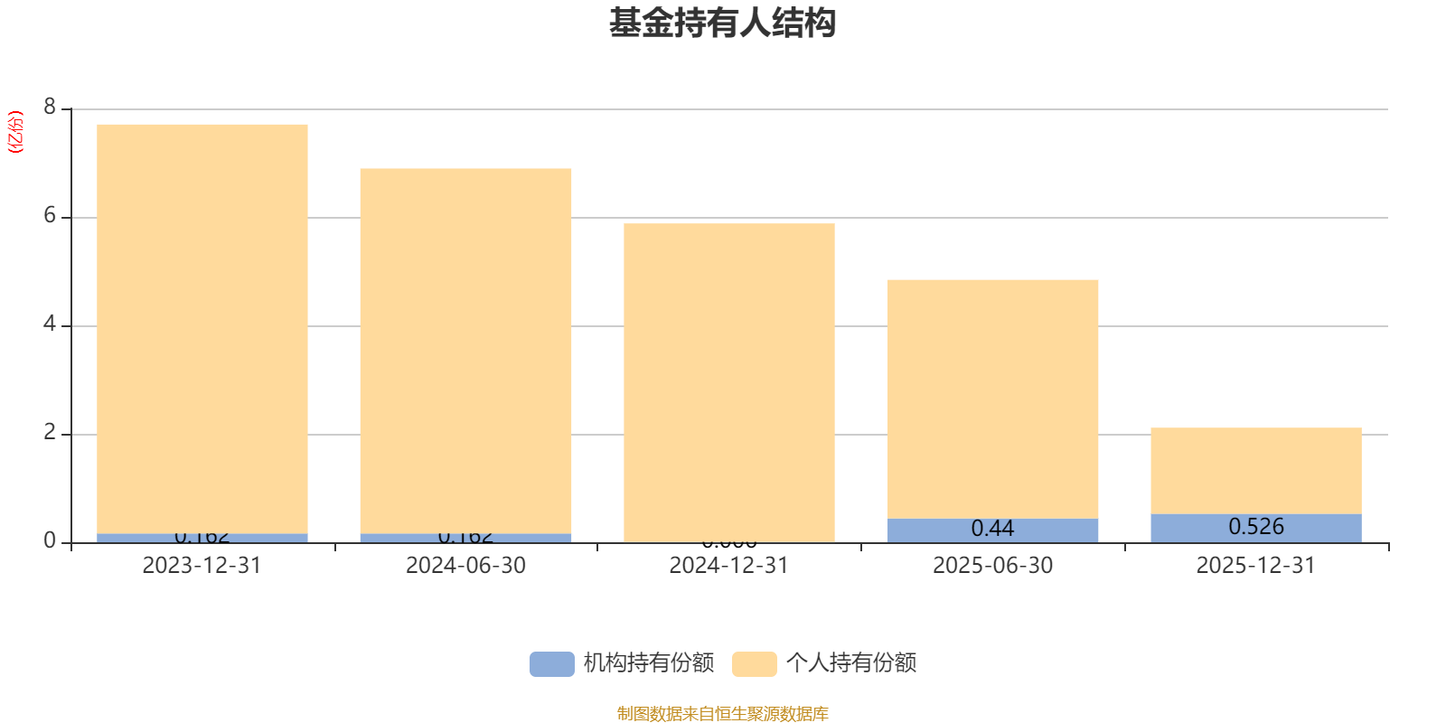 截至2025年12月31日,基金持有人共计2451户,合计持有2.11亿份。其中管理人员工持有620.23万份,占比2.94%,机构持有份额占比24.91%,个人投资者占比75.09%。