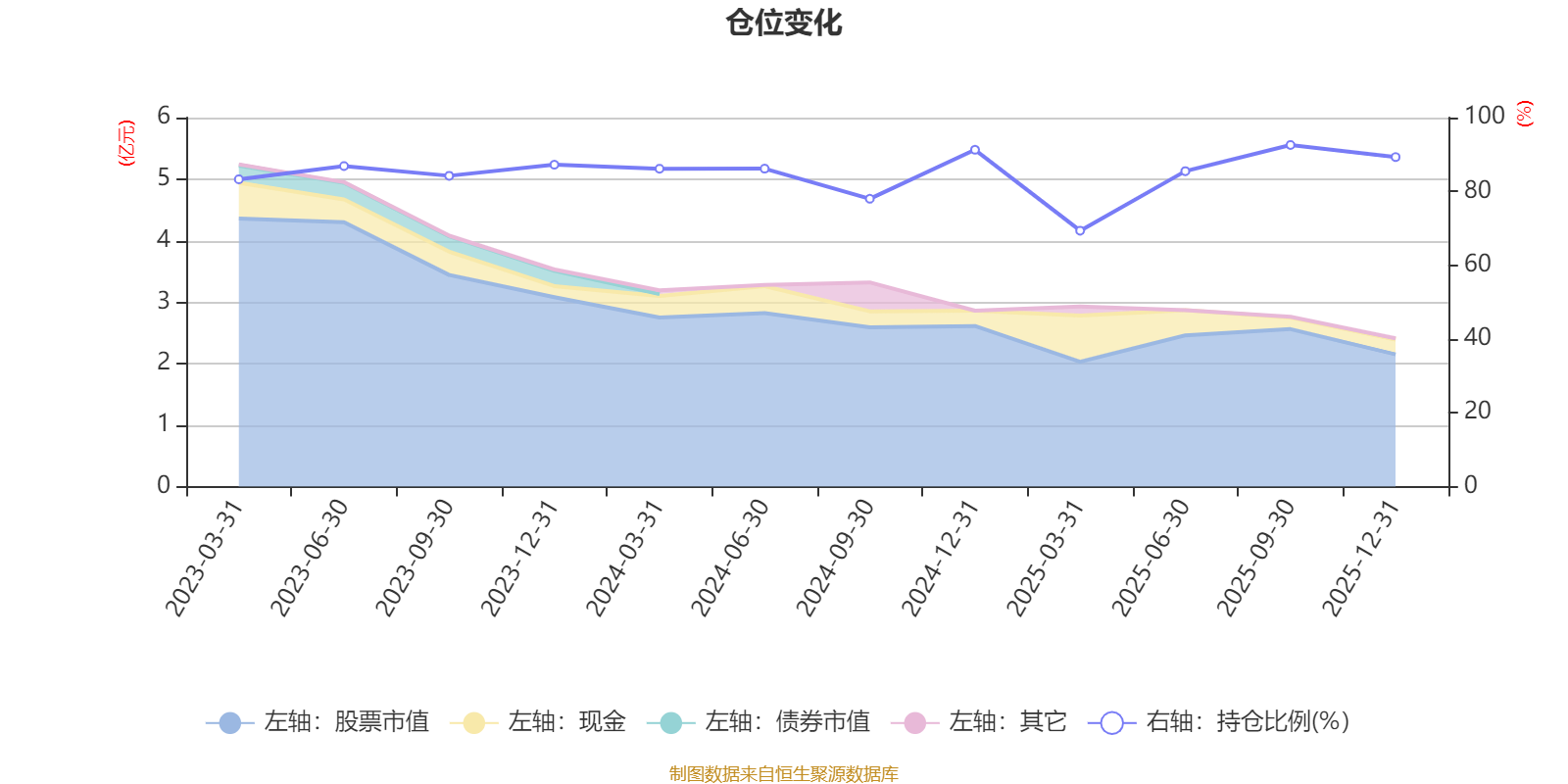 据定期报告数据统计,近三年平均股票仓位为84.99%,同类平均为85.83%。2025年三季度末基金达到92.58%的最高仓位,2025年一季度末最低,为69.35%。