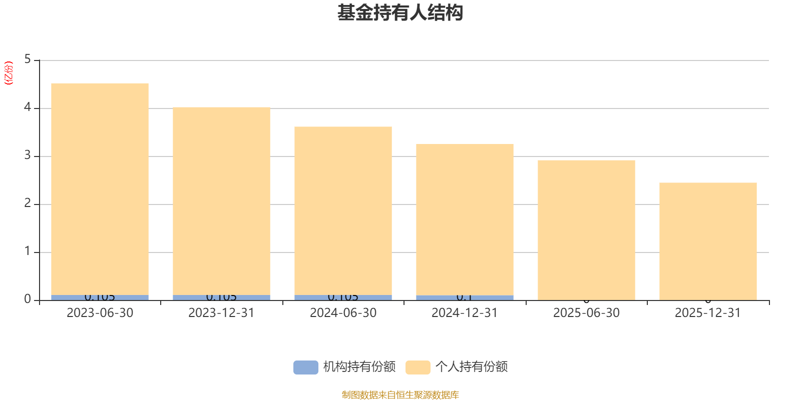 截至2025年12月31日,基金持有人共计5302户,合计持有2.44亿份。其中管理人员工持有100.05万份,占比0.41%,机构持有份额占比0.00%,个人投资者占比100.00%。