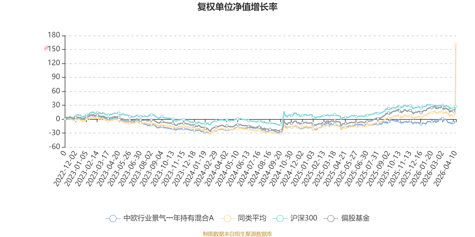 该基金属于偏股混合型基金。截至4月9日,单位净值为0.947元。基金经理是钱亚风云,目前管理的5只基金近一年均为正收益。其中,截至4月9日,中欧行业景气一年持有混合A近一年复权单位净值增长率最高,达17.91%;中欧致和混合A最低,为2.04%。