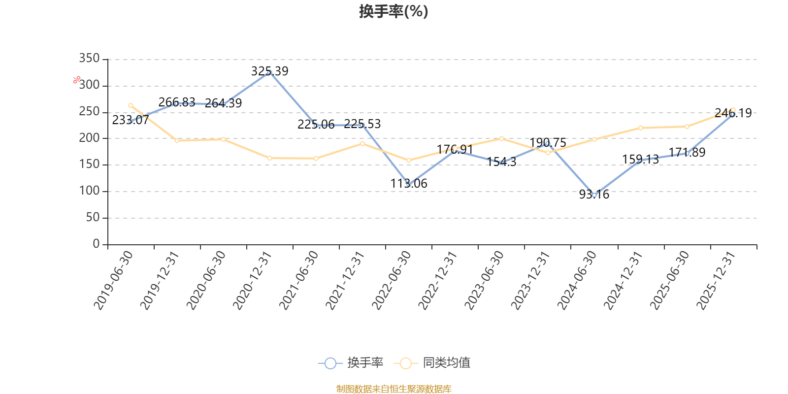 截至2025年12月31日,基金最近一年换手率约406.2%,持续2年低于同类均值。