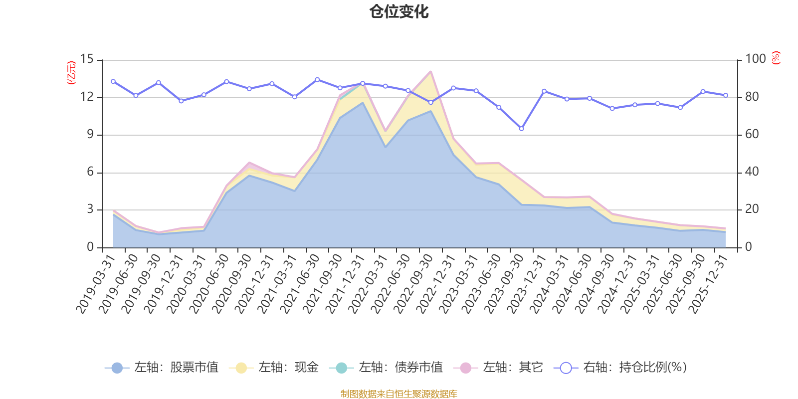 据定期报告数据统计,近三年平均股票仓位为77.44%,同类平均为85.83%。2021年上半年末基金达到89.47%的最高仓位,2023年三季度末最低,为63.37%。