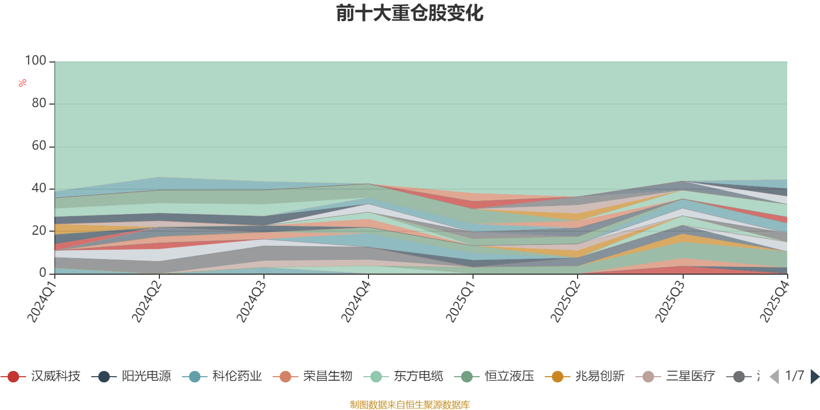 截至2025年末,基金十大重仓股分别是恒立液压、中际旭创、新易盛、洛阳钼业、紫金矿业、中国平安、生益科技、大金重工、阳光电源、豪迈科技。