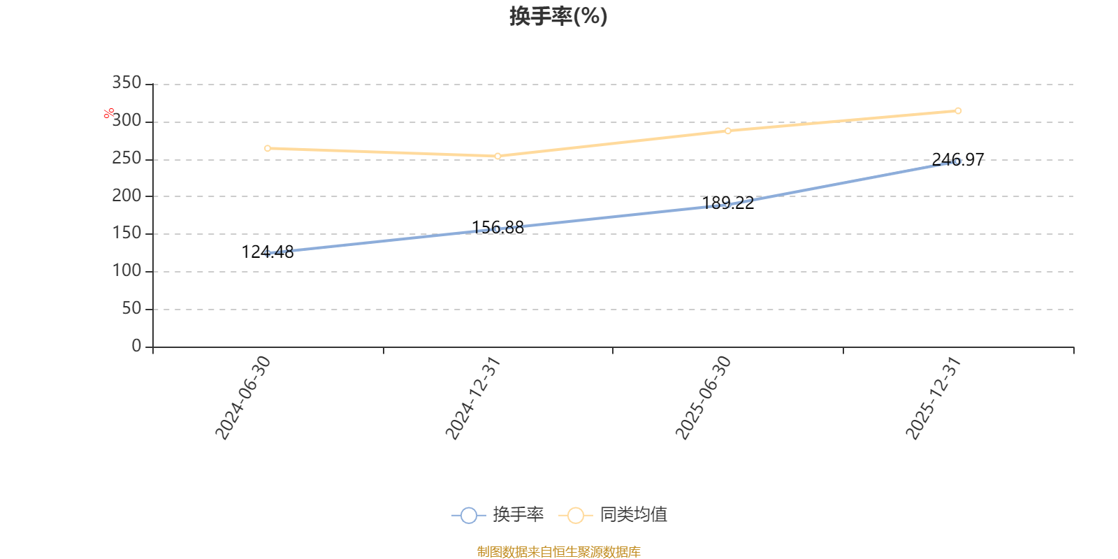 截至2025年12月31日,基金最近一年换手率约429.61%,持续低于同类均值。
