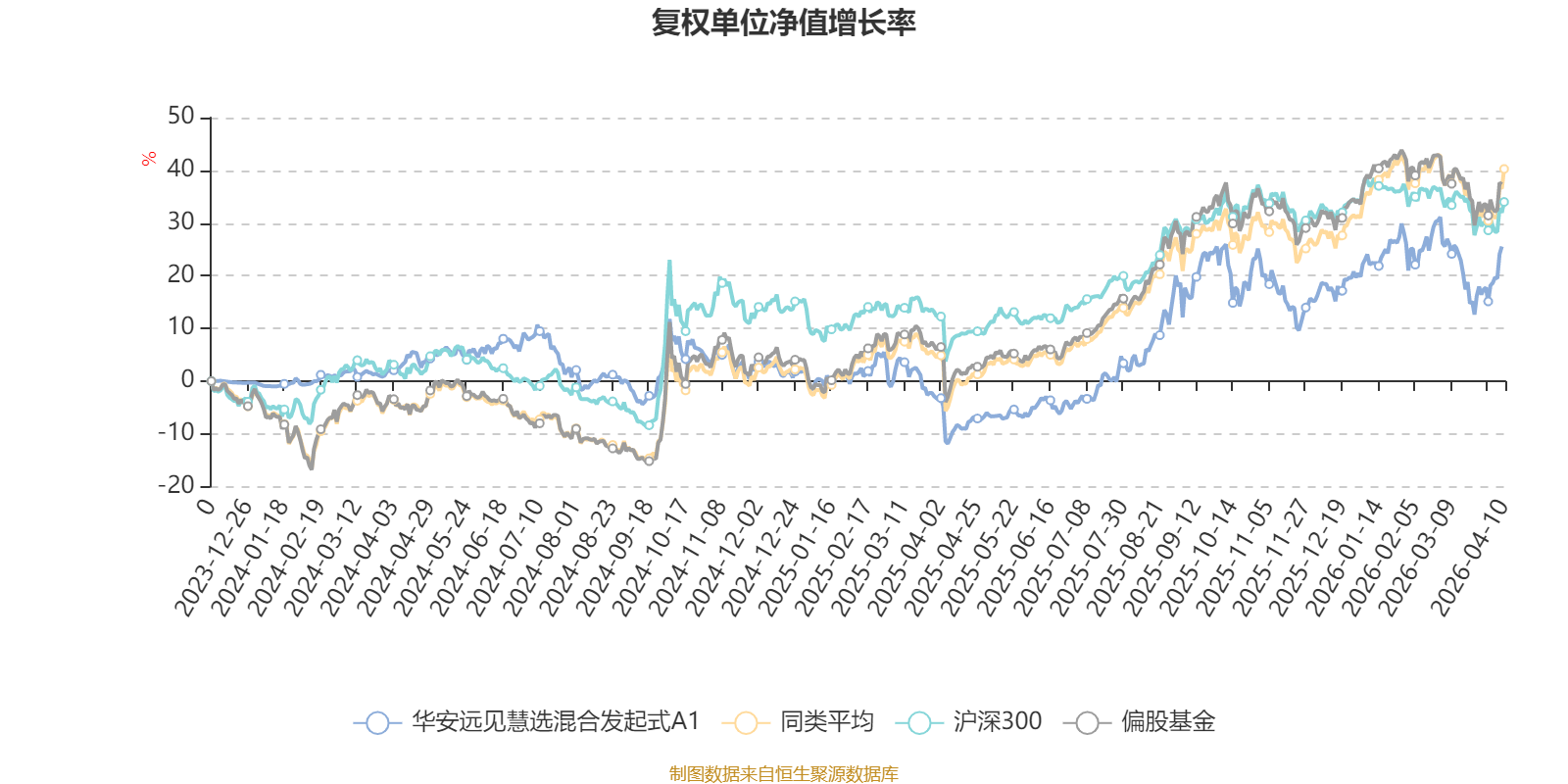 截至4月9日,华安远见慧选混合发起式A1近三个月复权单位净值增长率为2.55%,位于同类可比基金191/689;近半年复权单位净值增长率为-0.32%,位于同类可比基金415/689;近一年复权单位净值增长率为40.83%,位于同类可比基金307/685。