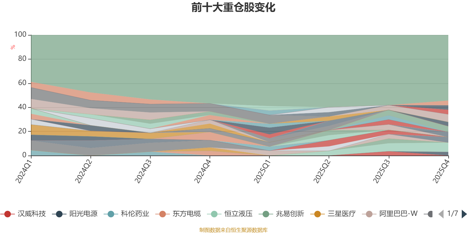 截至2025年末,基金十大重仓股分别是恒立液压、中际旭创、新易盛、洛阳钼业、中国平安、紫金矿业、生益科技、大金重工、腾讯控股、阳光电源。