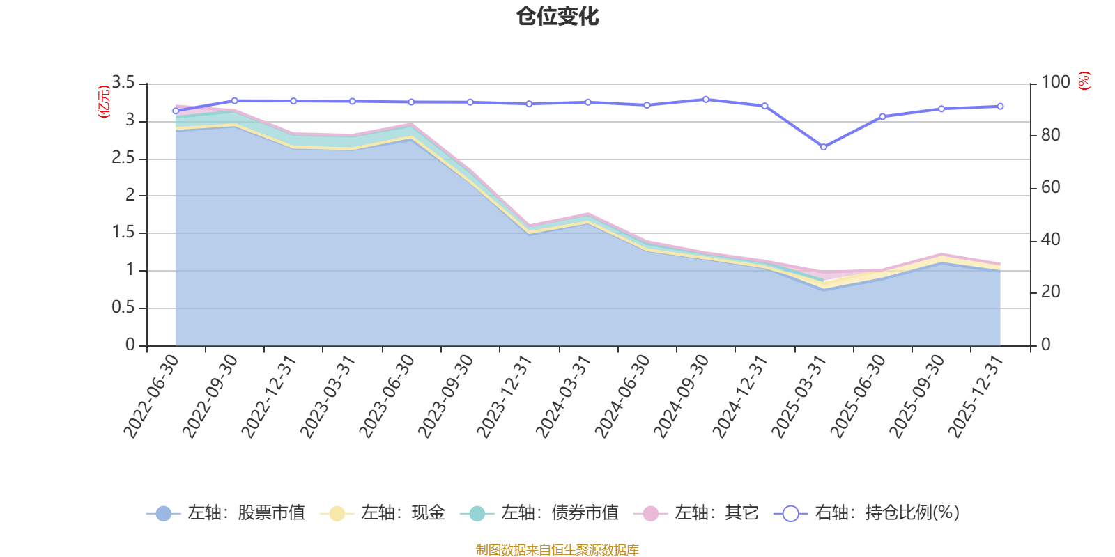 据定期报告数据统计,近三年平均股票仓位为90.52%,同类平均为84.04%。2024年三季度末基金达到93.93%的最高仓位,2025年一季度末最低,为75.8%。