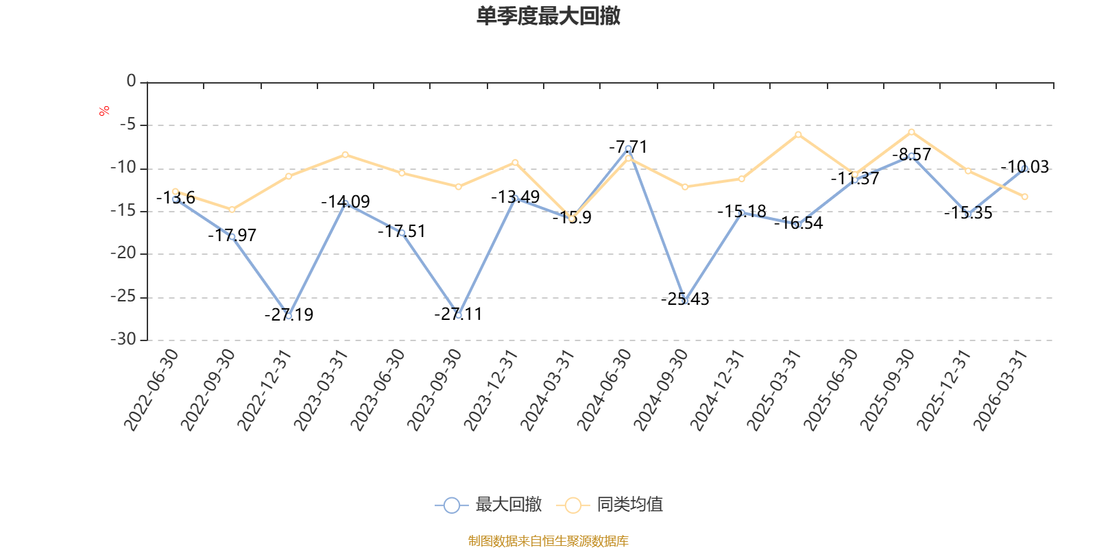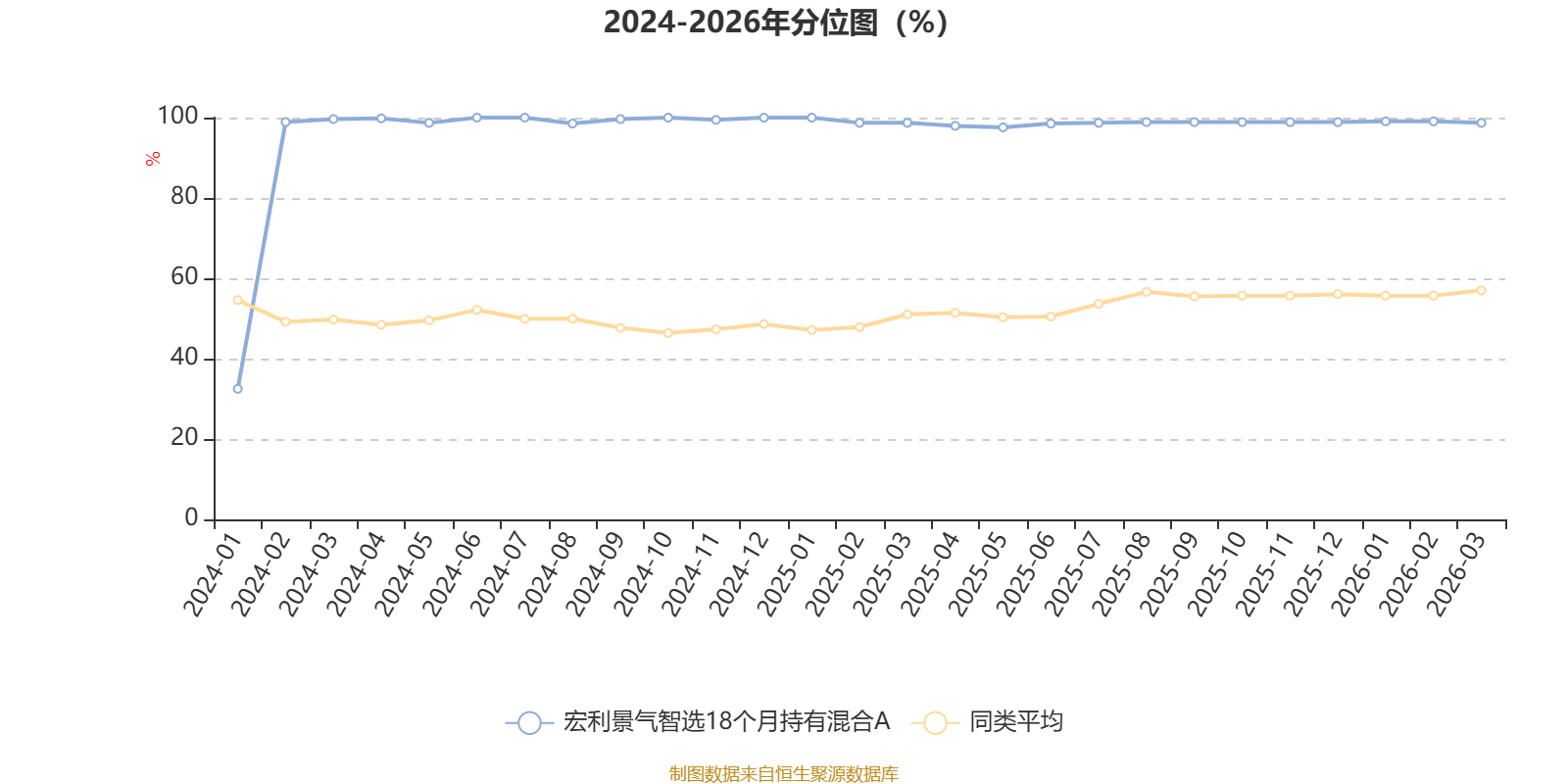 通过所选区间该基金净值增长率分位图,可以观察该基金与同类基金业绩比较情况。图为坐标原点到区间内某时点的净值增长率在同类基金中的分位数。