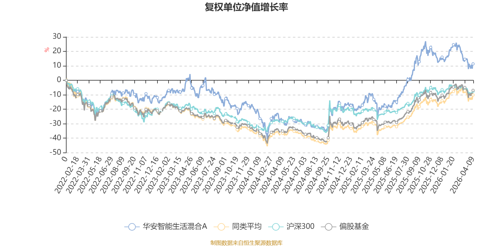 截至4月9日,华安智能生活混合A近三个月复权单位净值增长率为-7.94%,位于同类可比基金166/185;近半年复权单位净值增长率为-12.31%,位于同类可比基金176/185;近一年复权单位净值增长率为44.02%,位于同类可比基金74/185;近三年复权单位净值增长率为9.73%,位于同类可比基金110/177。