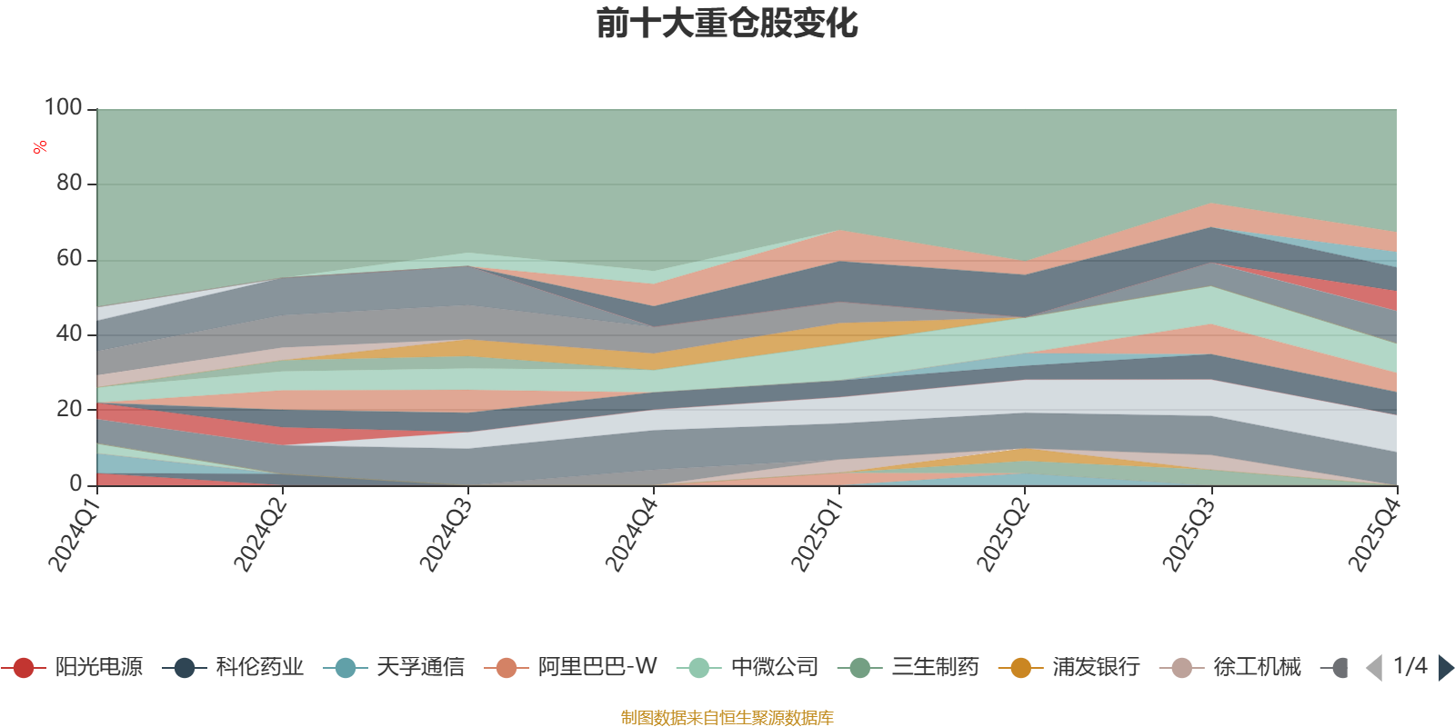 截至2025年末,基金十大重仓股分别是东山精密、宁德时代、中际旭创、腾讯控股、胜宏科技、亿纬锂能、天华新能、中芯国际、新易盛、艾力斯。