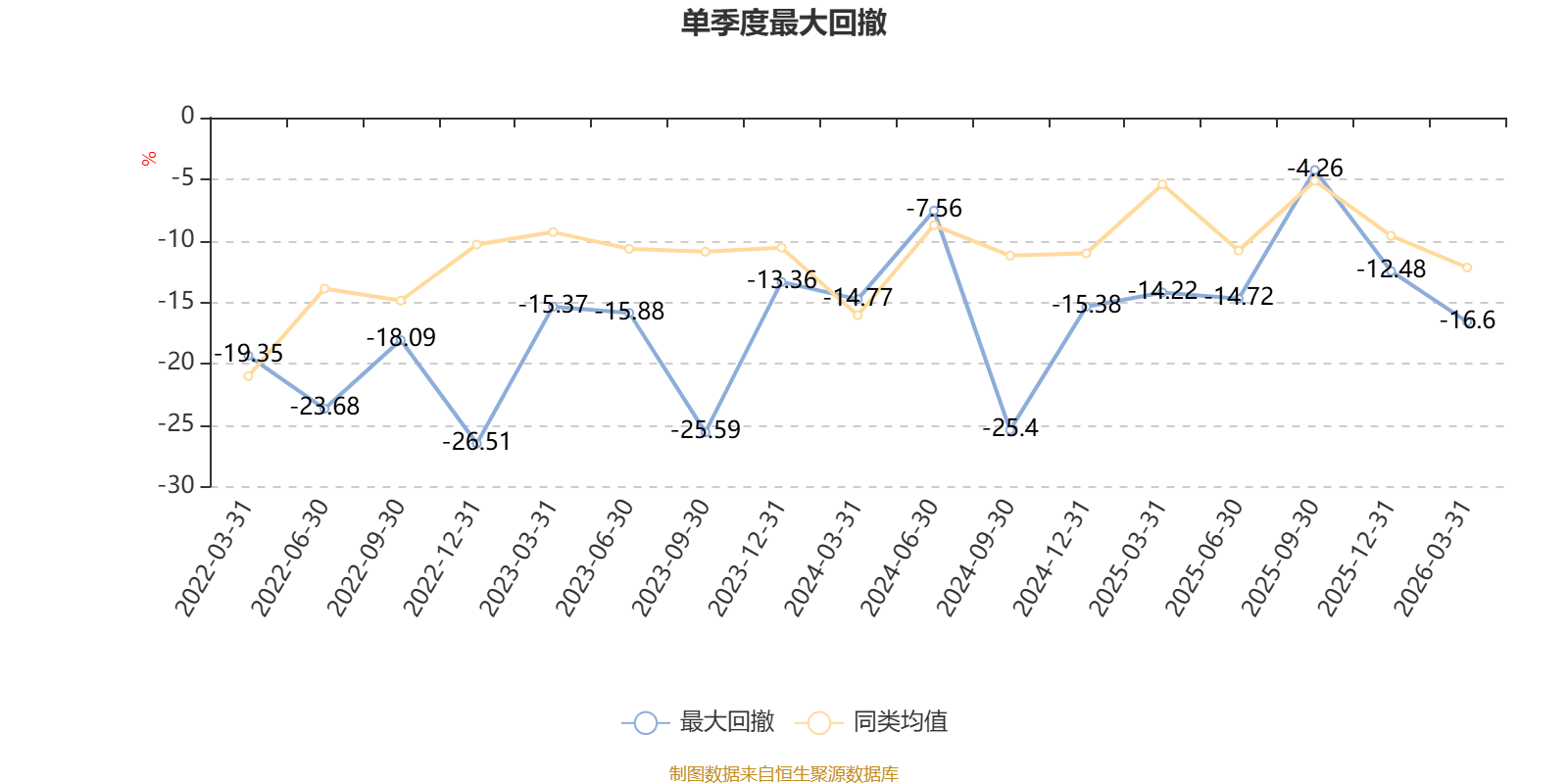 截至4月9日,基金近三年最大回撤为43.17%,同类可比基金排名162/178。单季度最大回撤出现在2022年四季度,为26.51%。